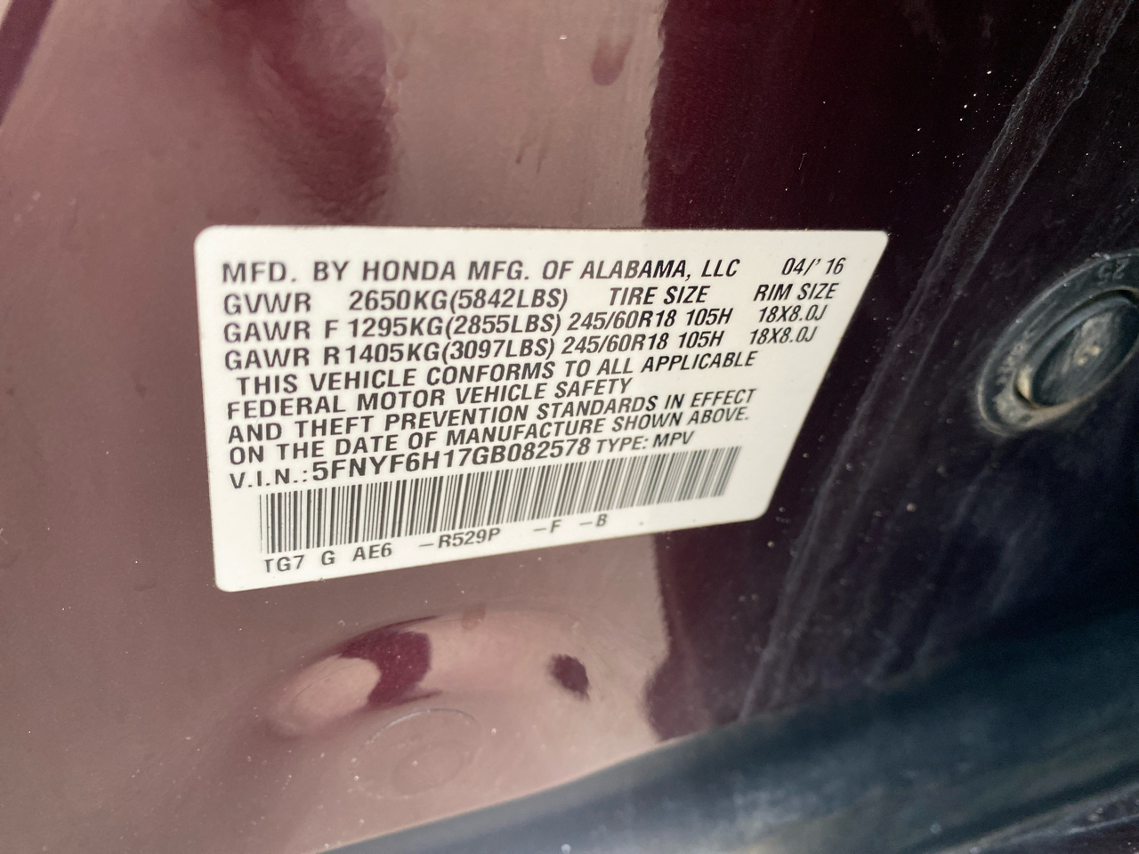 5FNYF6H17GB082578
